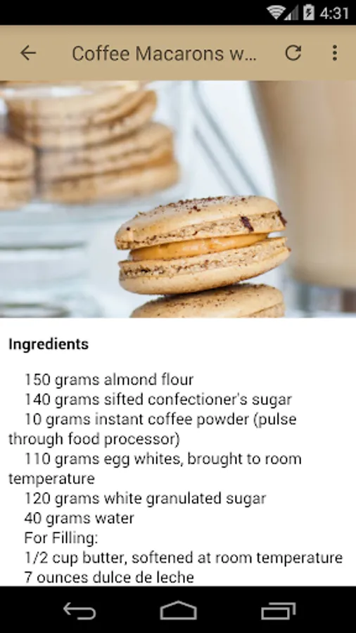 In this app is easy recipes for macaroons. With every update we add some new recipes.
