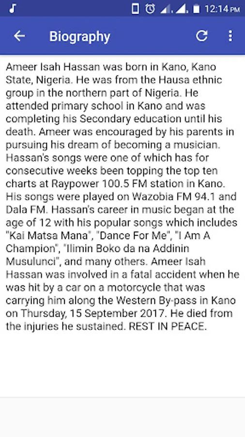 Ameer Isah Hassan was born in Kano, Kano State, Nigeria. He was from the Hausa ethnic group in the northern part of Nigeria. He attended primary school in Kano and was completing his Secondary education until his death. Ameer was encouraged by his parents in pursuing his dream of becoming a musician. Hassan's career in music began at the age of 12 with his popular songs which includes "Kai Matsa Mana, "Dance For Me", "I Am A Champion", "Ilimin Boko da na Addinin Musulunci", and many others.