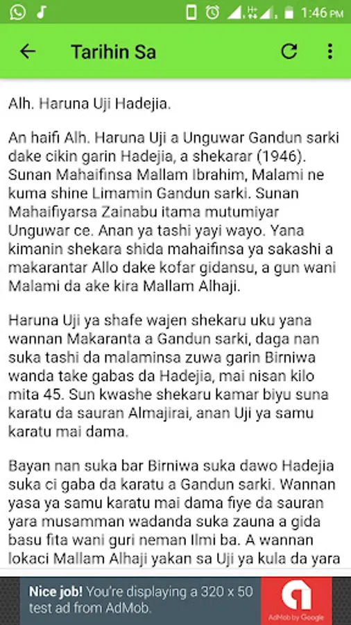 Haruna Uji ya shafe wajen shekaru uku yana wannan Makaranta a Gandun sarki, daga nan suka tashi da malaminsa zuwa garin Birniwa wanda take gabas da Hadejia, mai nisan kilo mita 45. Sun kwashe shekaru kamar biyu suna karatu da sauran Almajirai, anan Uji ya samu karatu mai dama.