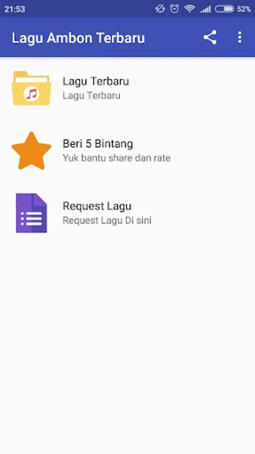 Recent Ambon song is Application Ambon and Maluku set of songs to date. You can listen to the best songs here. You can also request a song. So you waiting for, download it now.