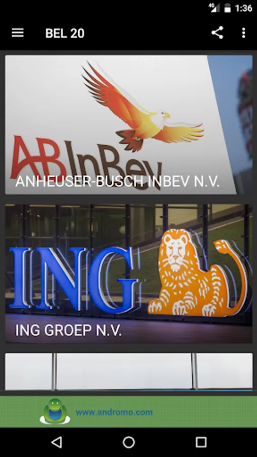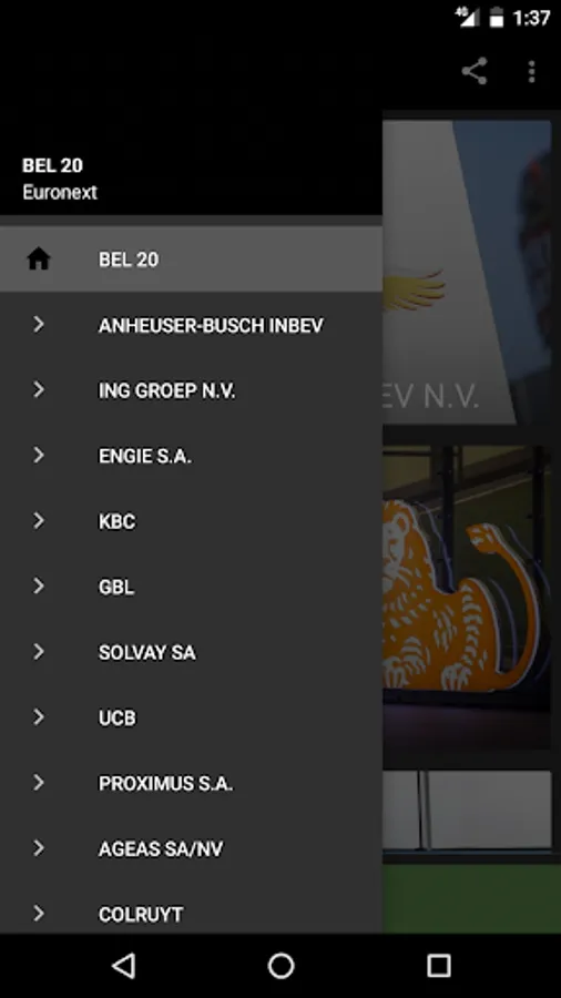 This app gives you information on all the companies listed in the Euronext BEL 20 index. Companies are listed by market cap.