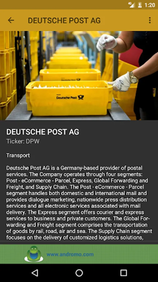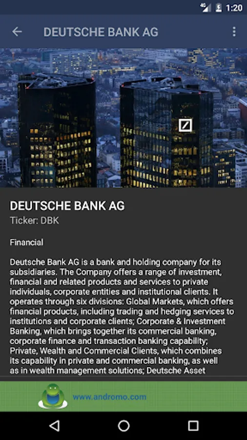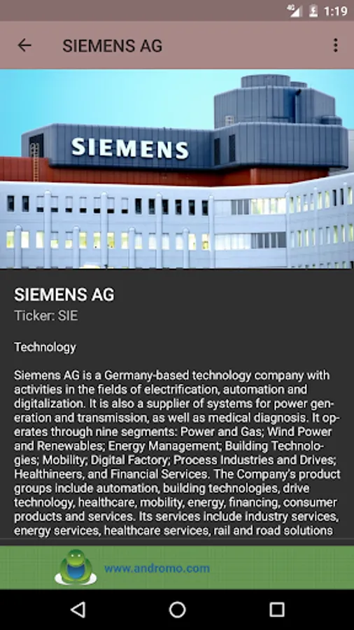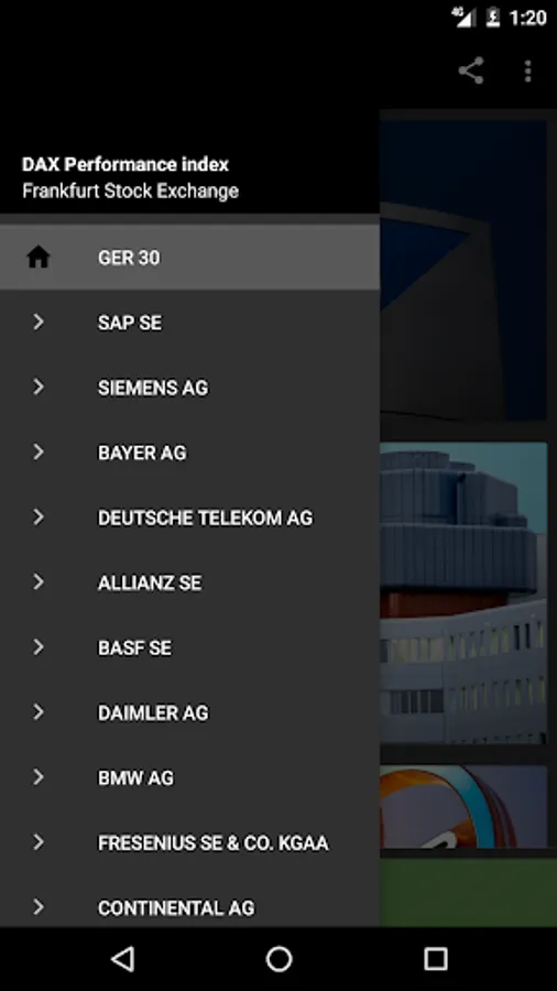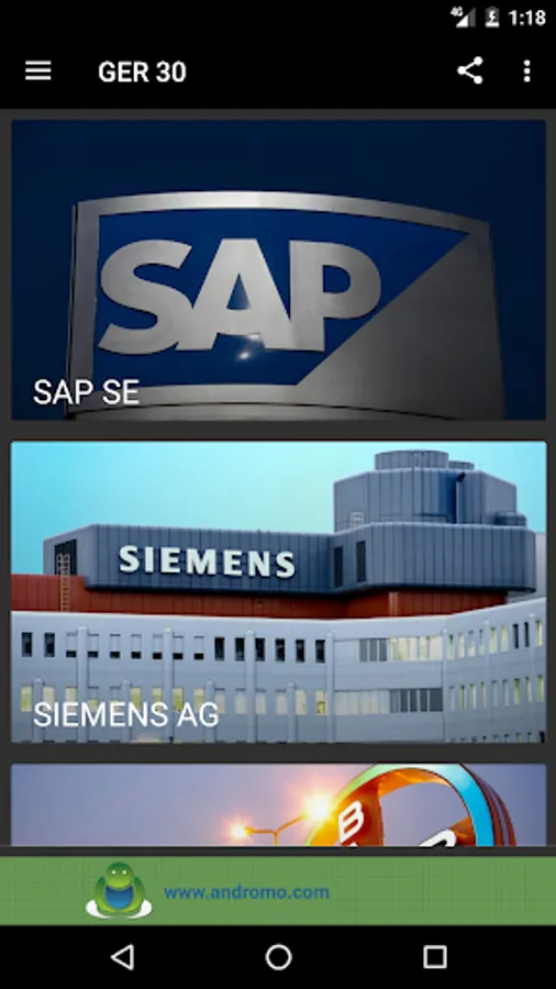 This app gives you information on all the companies listed in the German DAX Performance index. Companies are listed by market cap.