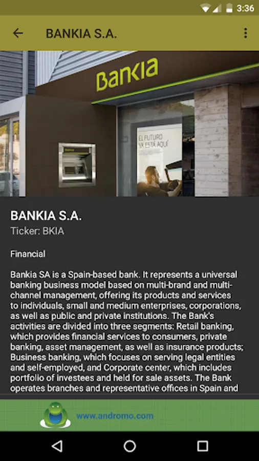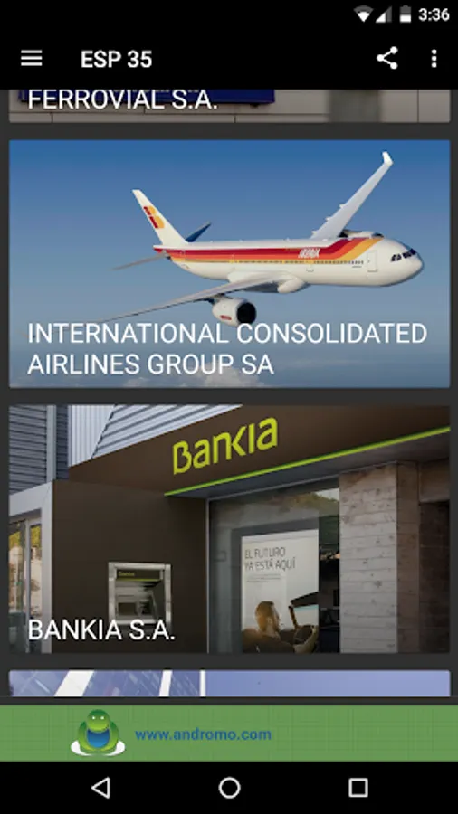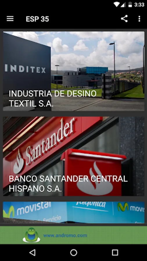 This app gives you information on all the companies listed in the Spain IBEX 35 index. Companies are listed by market cap.