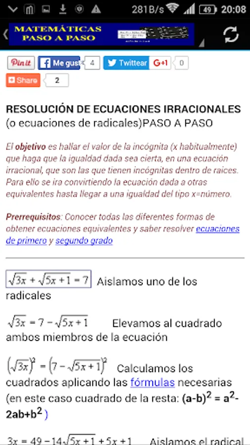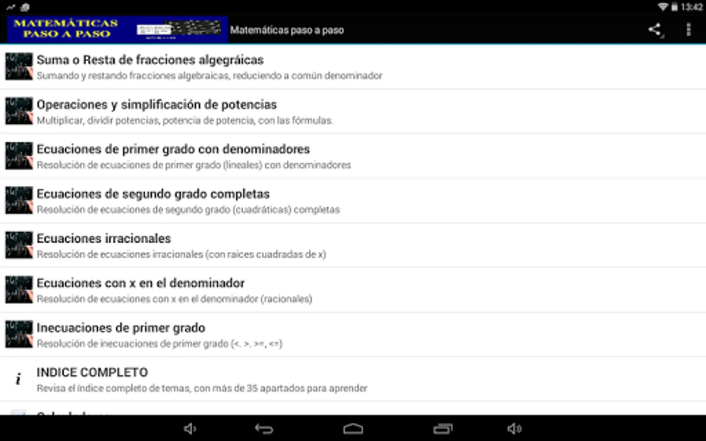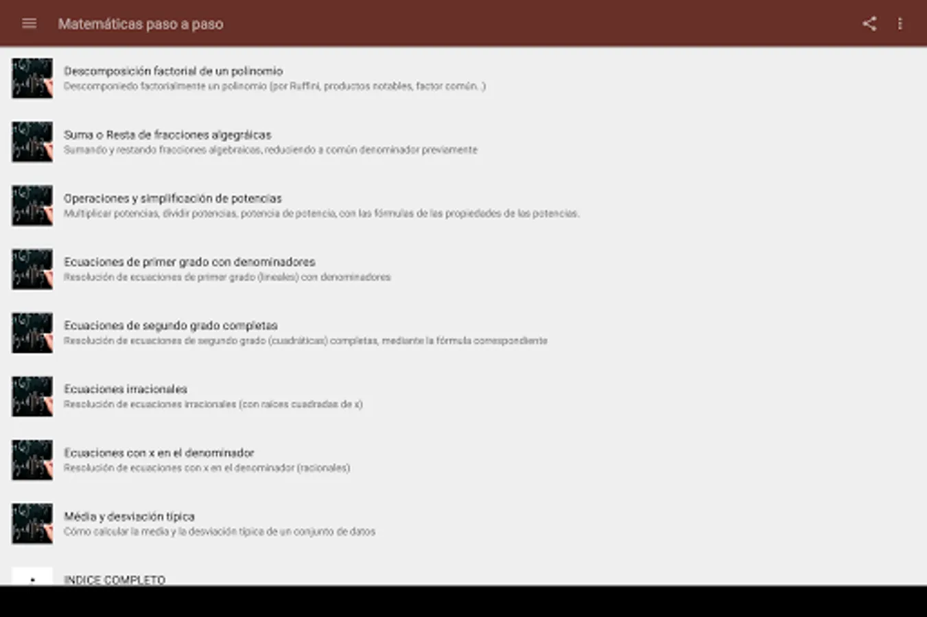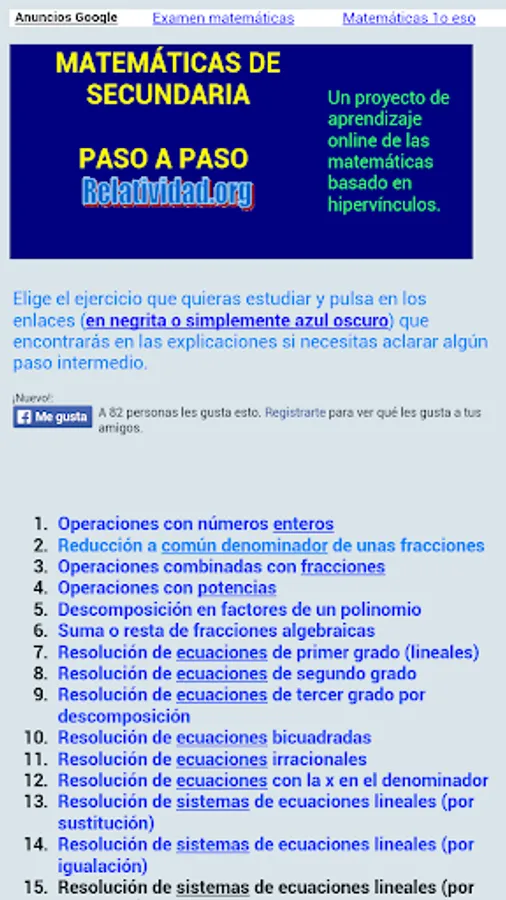 Collection math exercises solved step by step and links between them to clarify any doubts that may arise. In Spanish.