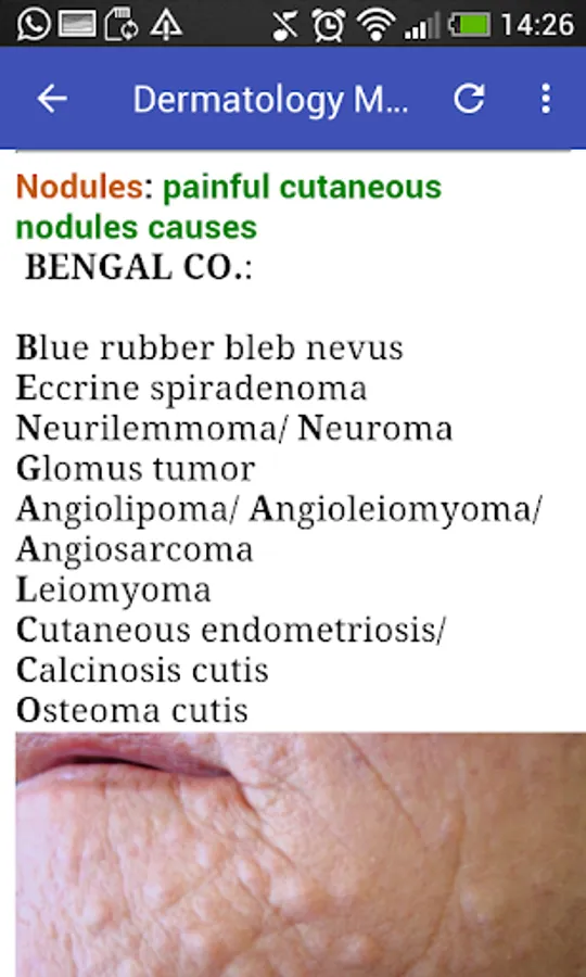 This mnemonic is well DESIGNED WITH COLOUR AND IMAGES of related topics to help you not only memorize but also understand what you read. The contents are also arranged in alphabetical order to ease searching of required contents. We also made it easier for the user to see the content more clear and bigger by making it easy to be zoomed.In our efforts to providing latest and updated illustrations, most of the IMAGES ARE ONLINE IMAGES, SO THE USER NEEDS NETWORK CONNECTIONS to visualize these images and this will help us updating the app with latest and most important images of the related topic within short period. However, THE WHOLE TEXT & SOME IMAGES ARE OFFLINE.