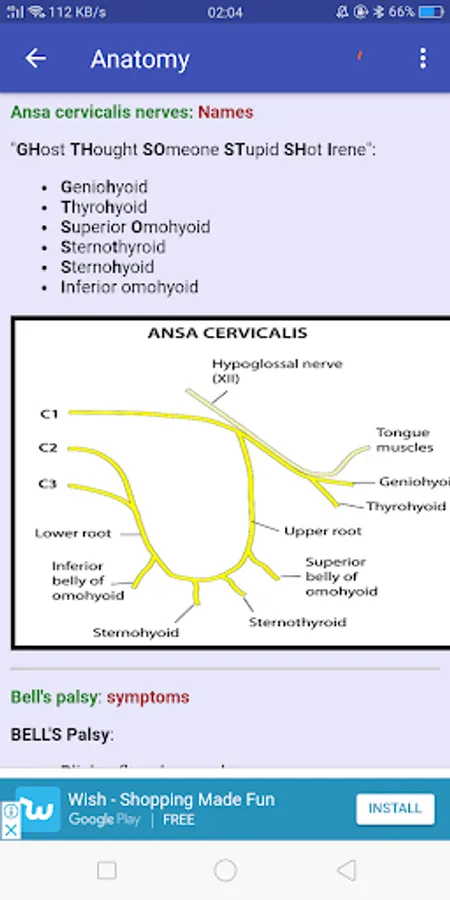 This mnemonic app is well DESIGNED WITH COLORS AND IMAGES of related topics to help you not only memorize but also understand what you read. The contents are also arranged in topic wise and alphabetical orders to ease searching of required contents.In our efforts to providing latest and updated illustrations, we made some of the images to be ONLINE, SO THE USER NEEDS NETWORK CONNECTIONS to visualize these images and this will help us updating the app with latest and most important images of the related topic within short period. However, THE WHOLE TEXT & SOME IMAGES ARE OFFLINE.