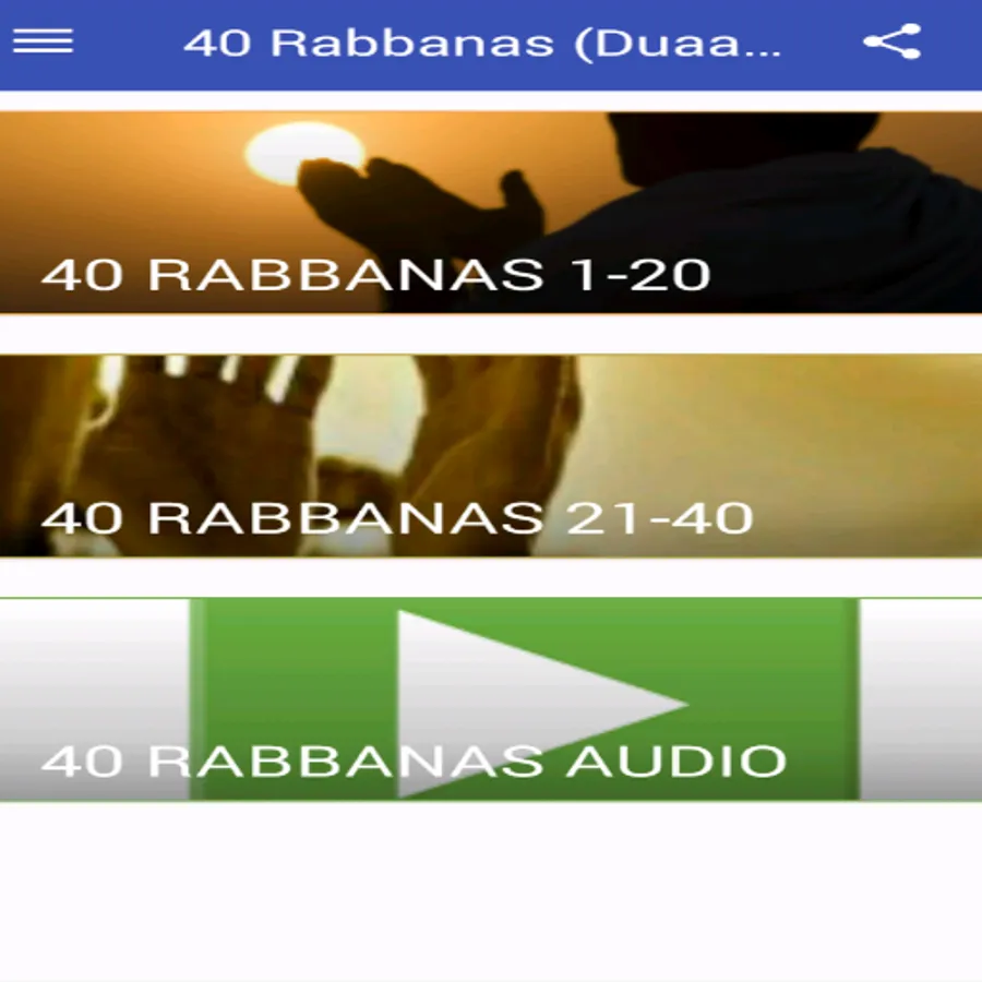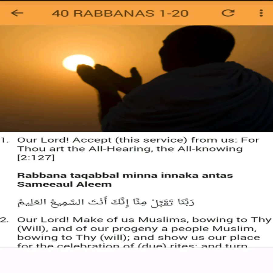 40 Rabbanas Duas Mp3 Offline is aplication collection of some 40 invocations (duas) of the Quran which begin by "Rabbana" (Our Lord) or "Rabbi" (My Lord).