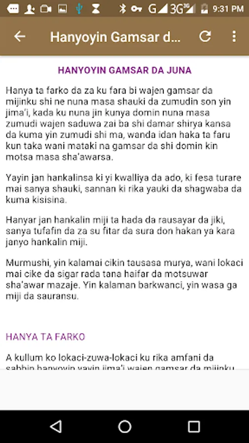 Wannan Appkication ya kunshi Dabaru, magunguna, shawarwari da hanyoyin da ma'aurata zasubi domin inganta rayuwar aurensu