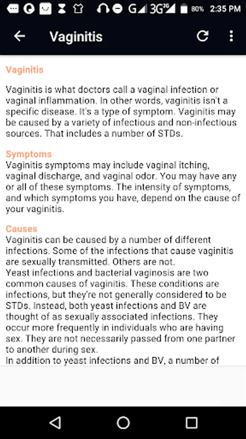 This application contain Infections and treatments of the vagina caused by a fungus known as Candida. A vaginal yeast infection is characterized by itching, burning, soreness, pain during intercourse and/or urination, and vaginal discharge that is typically cheesy white in color. The diagnosis is confirmed through identification of the yeast under a microscope from a specimen scraped from the vaginal area. A vaginal yeast infection is treated with topical medications applied in and around the vagina; vaginal tablets, and oral medications. During pregnancy, only the topical creams are used.