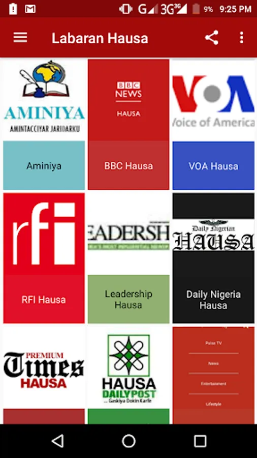 Wannan manhaja ta kunshi jaridun gida dana kasashen waje cikin harshen hausa inda zaku karanta labaran duniya, labaran wasanni, tattalin arziki da sauransu daga ingantattun jaridun.