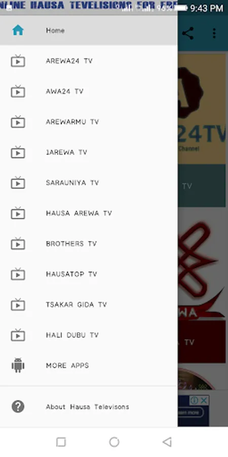 Ku sauke manhajar gidan tv na hausa wanda zaka/ki samu damar shirye shiryen gidajen tv na hausa wanda sunanan online. Da wannan application zaku samu damar kallon fina finan hausa, wakokin hausa, hausa comedy, shirin dadin kowa sabon salo na arewa24, da sauran shirye shirye masu matukar amfani wajen fadakarwa, nishadantarwa, tare da ilimantarwa.