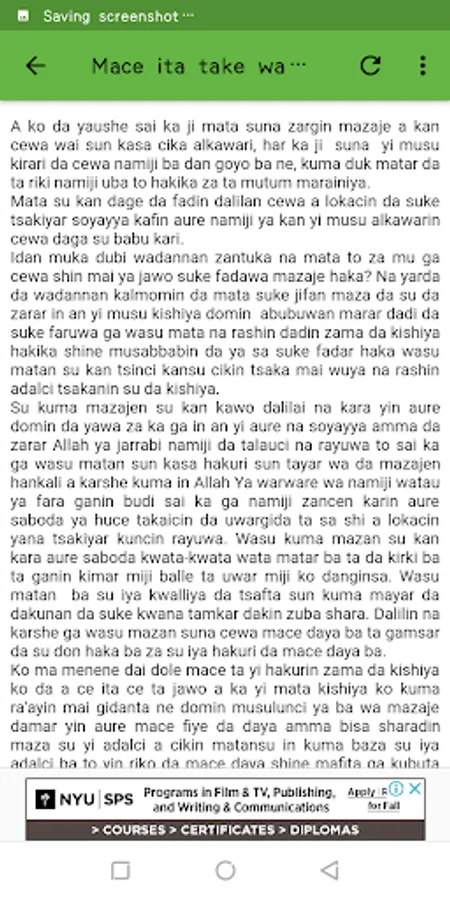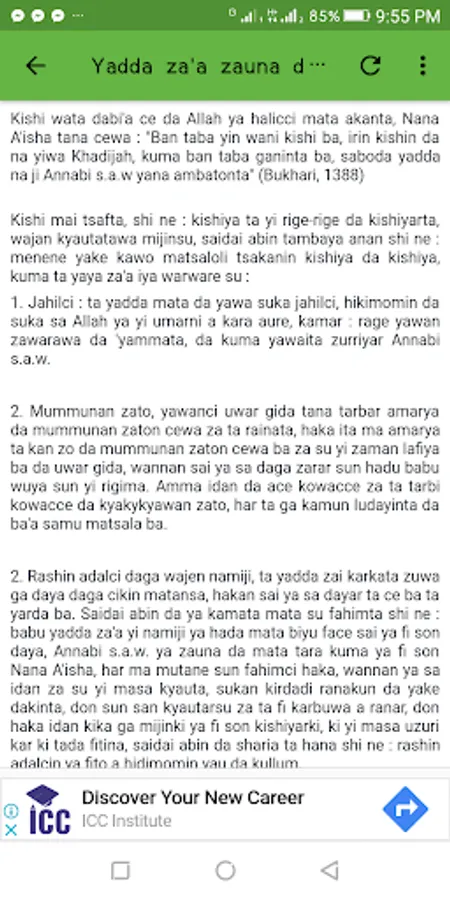 Wannan mahanja tana kunshe da cikakken bayani akan yadda zaka zauna da mata biyu ba tare da matsala ba, da kuma yadda ita kanta uwar gida zata shawo kan matsaloli dan gane da zama da Kishiya.