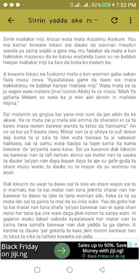 Amarya/Uwar gida ki sani, lallai biyayya ga mijinki shine abunda yafi dacewa dake matukar ba umarni yayi miki da sa6awa Allah ba. Saboda babu biyayya ga wani mahaluki cikin sa6awa mahalicci.