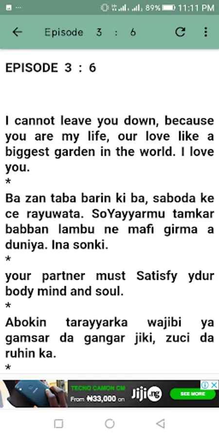 Na gode matata ina alfahari da samun ki a rayuwata. Ina nan cike da kewarki cikin zumudin son dawowa gida na sanya ki a idanuwana.