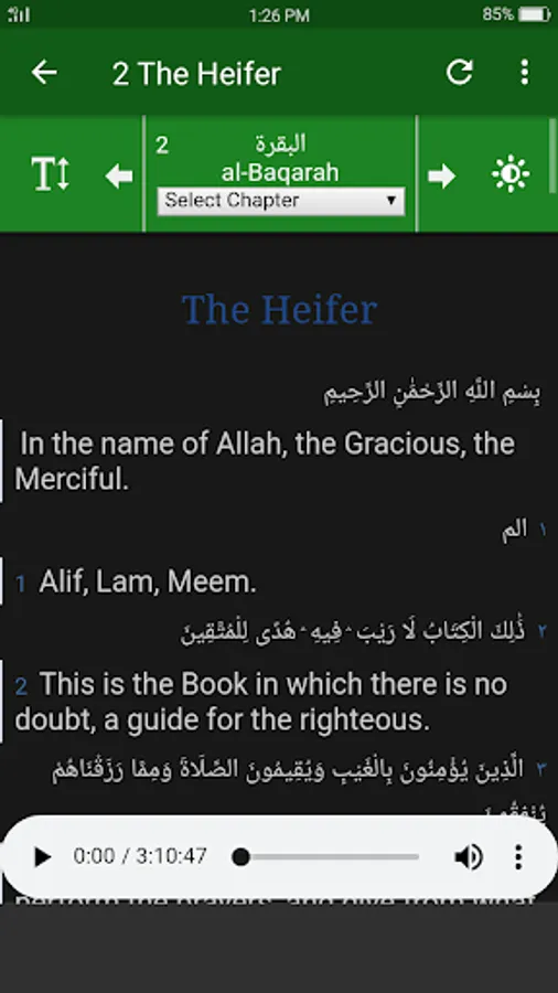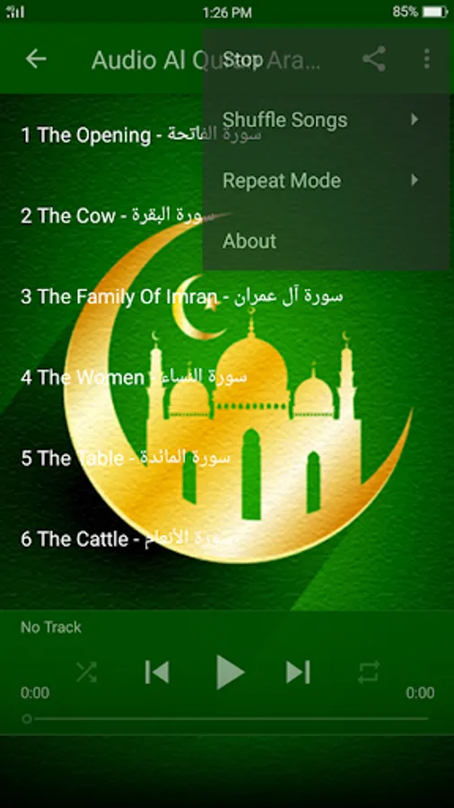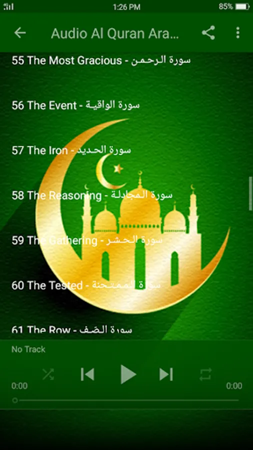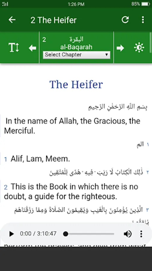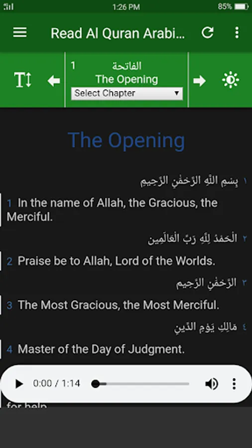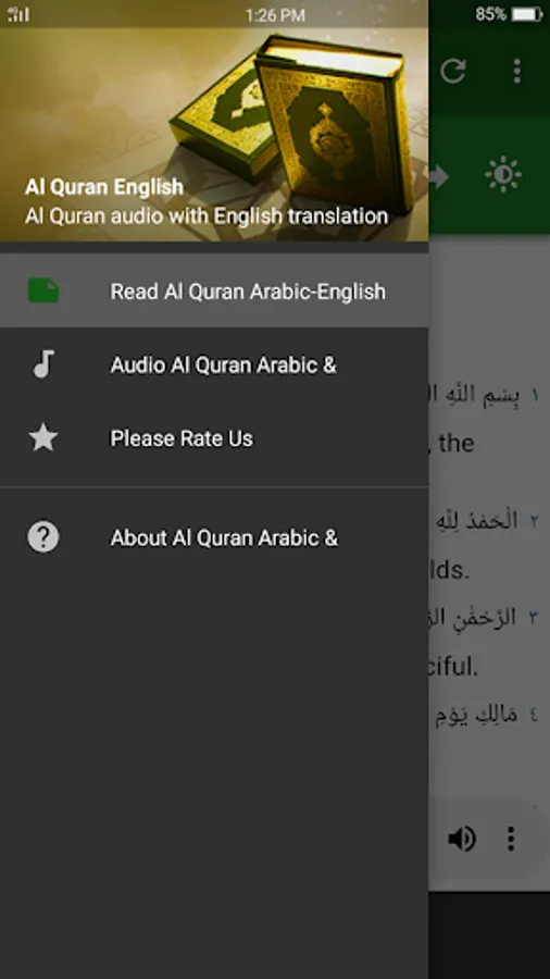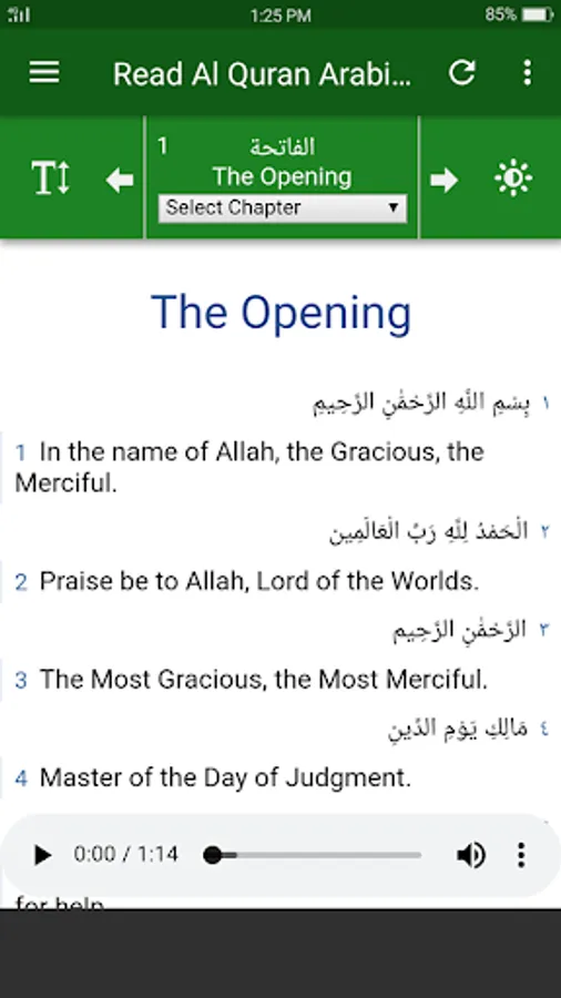 Al Quran English - This Quran application is a great way to study the Holy Quran English in terms of the current modern world. This application allows you to listen to Arabic reading and english translating in every surah. All surahs are in high quality audio stream as mp3s. Internet connection is required to listen to the audios, then you can save your device storage.