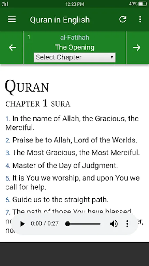 Holy Quran in English audio feature is suitable for Muslim who want to learn Quran in English but have no time to read.