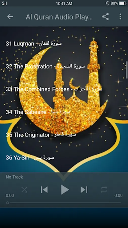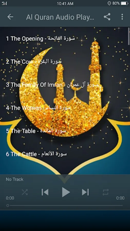 ☆Al Quran audio playlist that let you listen to all surahs continuously.