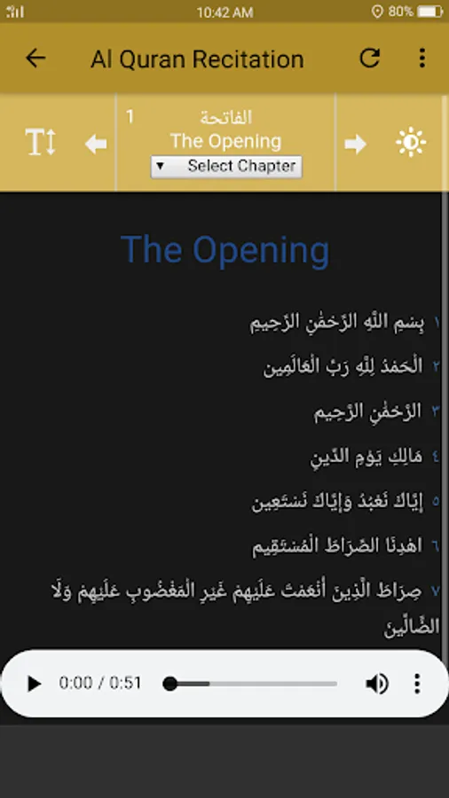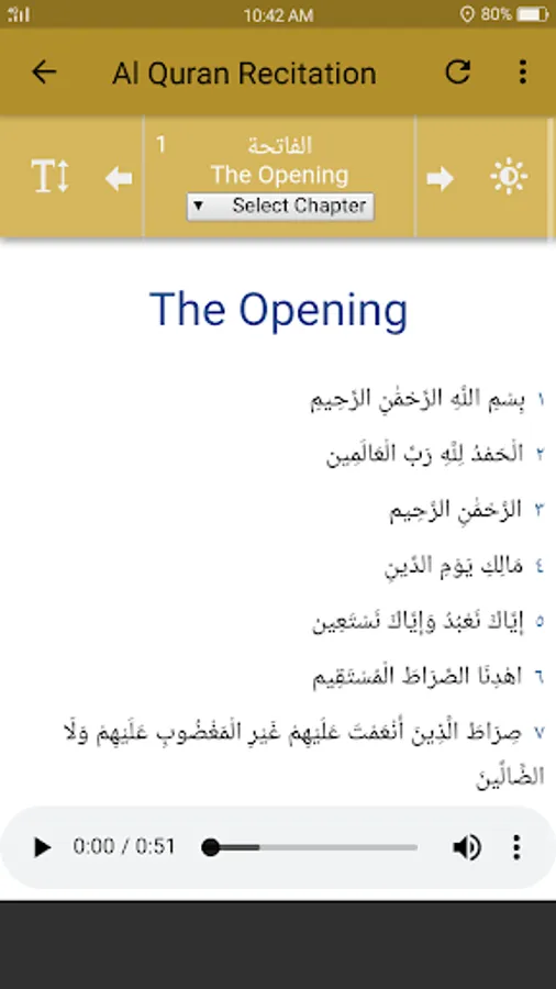 ☆Audio recitation of each chapter and verse to facilitate the Muslims around the world.
