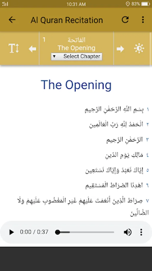 ☆Audio recitation of each chapter and verse to facilitate the Muslims around the world.