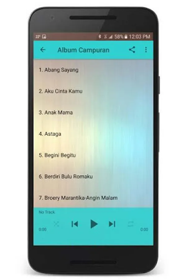 - Tersedia tombol shuffle on/off dan mode repeat ( ulang)