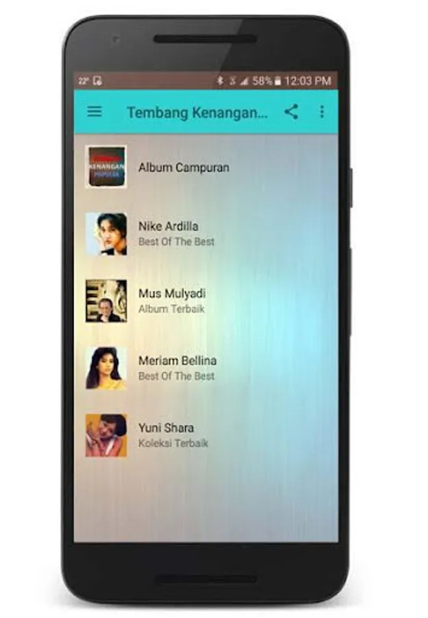 Aplikasi ini berisi kumpulan Lagu lagu lawas zaman dulu yang bisa membangkitkan memori indah anda. Dengarkanlah alunan musik dari musisi2 yang dulu pernah menjadi icon dan populer pada zaman dulu tahun 70n -80n-90n. Khusus untuk anda penggemar Tembang Kenangan Nostalgia.