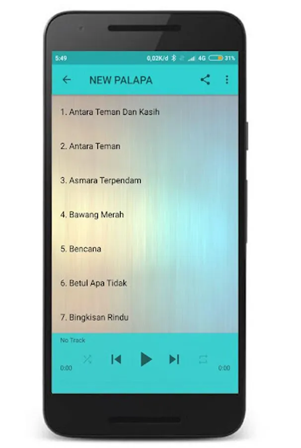 - Tersedia tombol shuffle on/off dan mode repeat ( ulang)