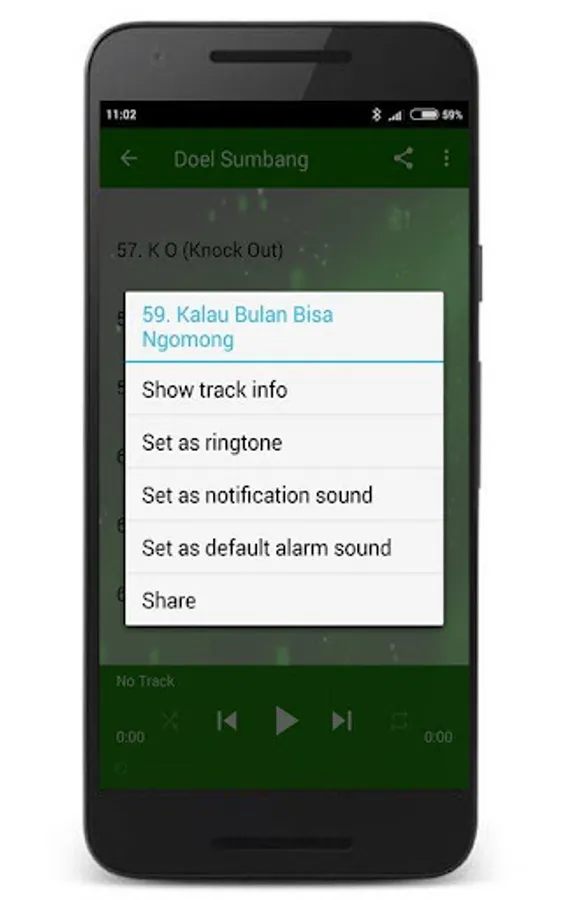 - Tersedia tombol shuffle on/off dan mode repeat ( ulang)