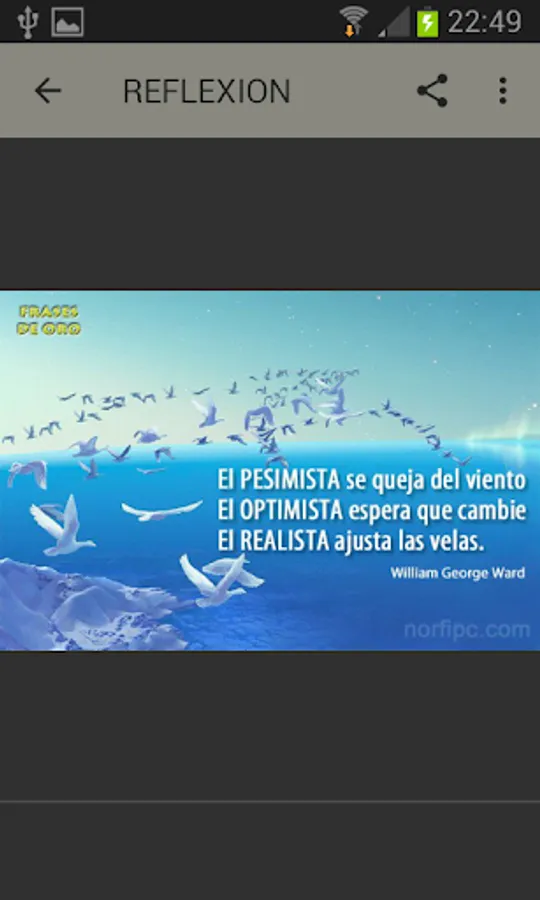 In this application you will find beautiful reflections that will touch your soul. That will help you to make good decisions, it is always good to take time to relax, to think and to clear your mind. Any quality and virtue that can be exalted from the mind comes precisely from reflection, unfortunately in a world where everything runs fast, people no longer take the time to stop and think. If you want to make good decisions in your life, exercise reflection.