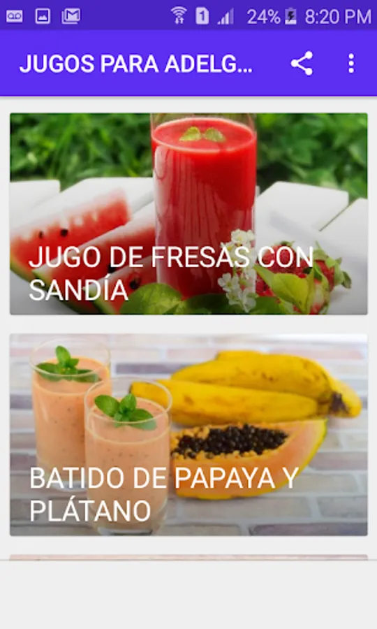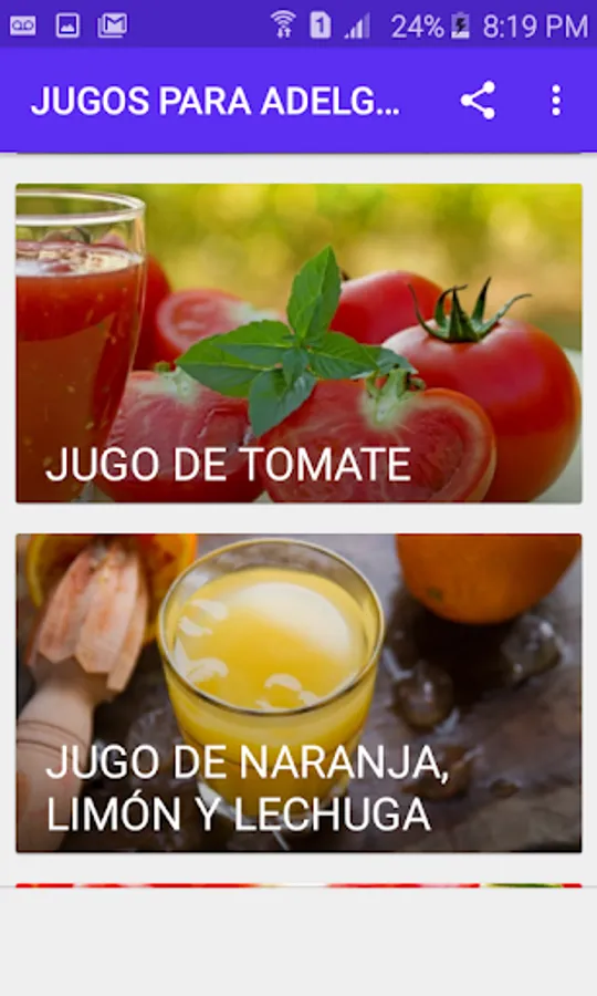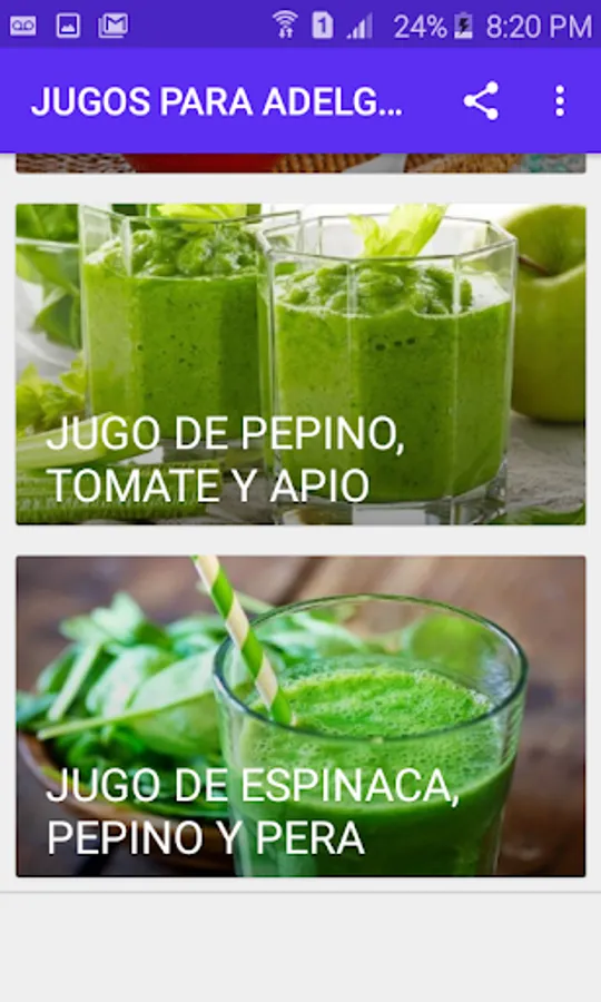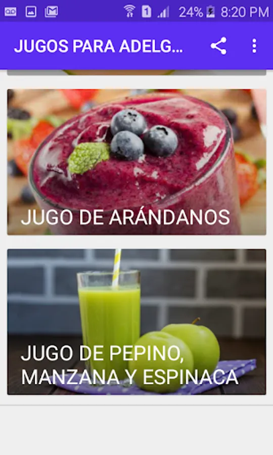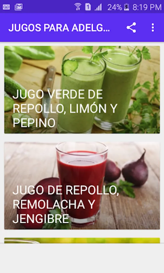 In this application you will find delicious natural juices that will help you lose weight and cleanse the body thanks to the fact that they have few calories and are rich in nutrients that improve the functioning of the intestine and liver. In addition to this they are also rich in antioxidants and fibers, helping to strengthen the immune system and improve intestinal transit.