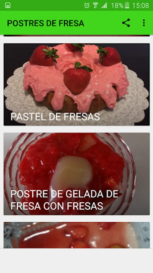 In this APP we give several types of desserts with strawberry. Easy and quick recipes, homemade desserts and recipes step by step, that is what you will find in this fantastic list of desserts where the strawberry is the main protagonist, a list of special recipes for the sweet tooth and those who love strawberries.