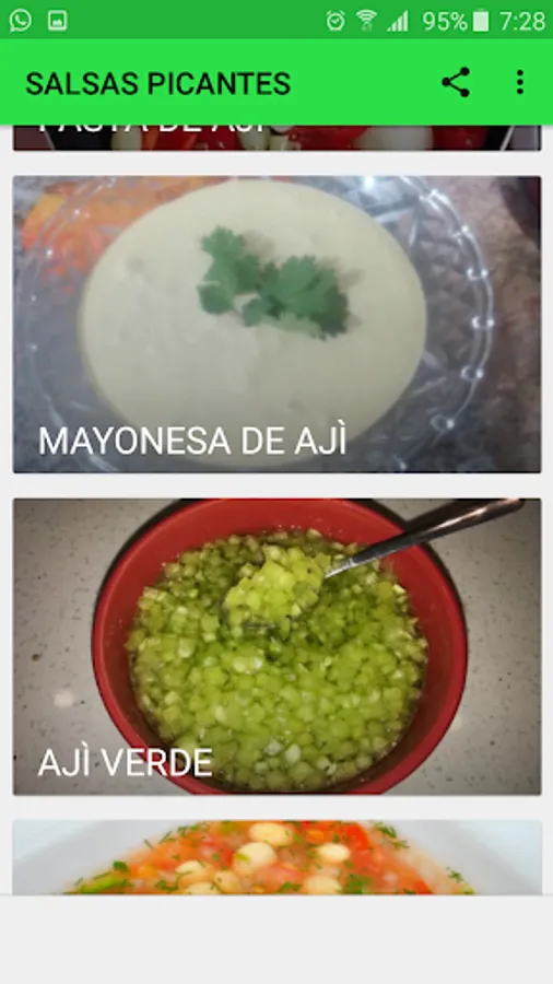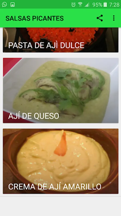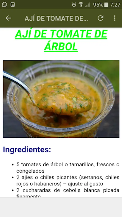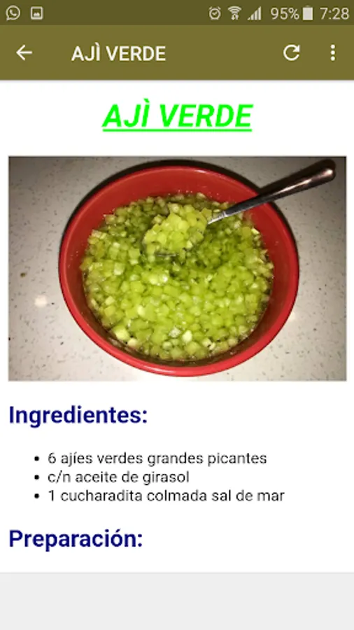 In this application you will find several ways to prepare spicy sauces that traditionally accompany meals. These sauces are known as "chili" and are prepared in various ways. The ají complements every dish of salt and is a very important culinary tradition.