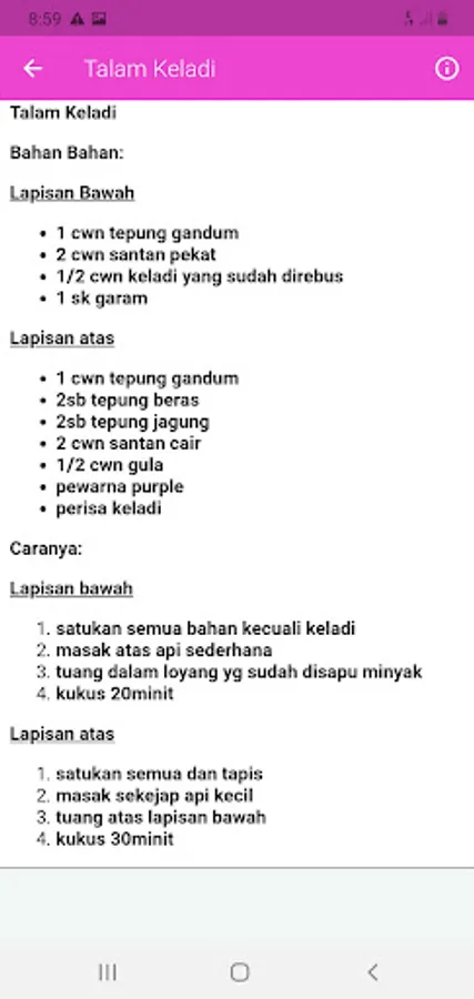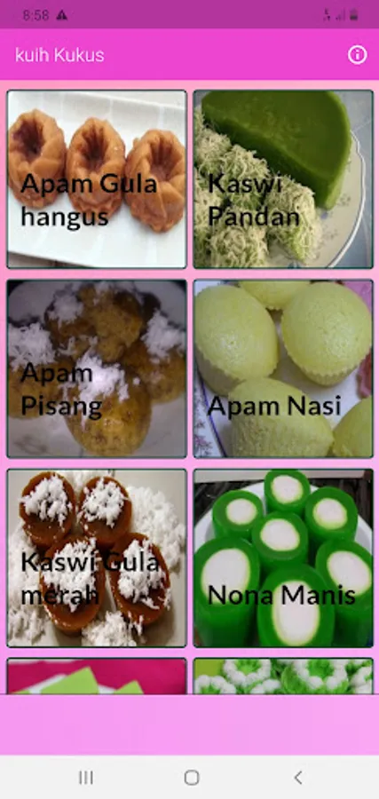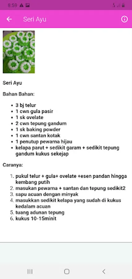 Aplikasi ini mengandungi resepi2 kuih kukus yang mudah dan senang dibuat.