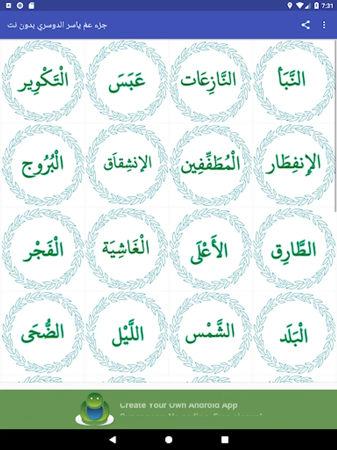-واجهة سهلة فهرس جزء عم