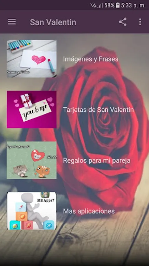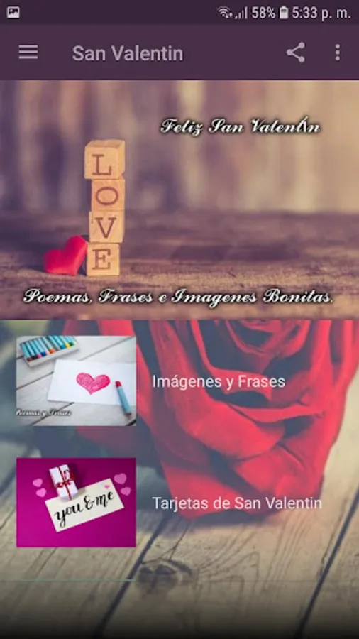 Download this application now and enjoy sending original phrases of love and Valentine's congratulations, show how much you love your partner, know how to value these images of Love and Friendship with beautiful phrases of St. Valentine.