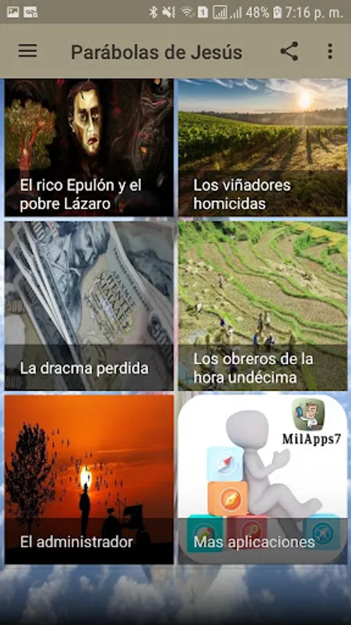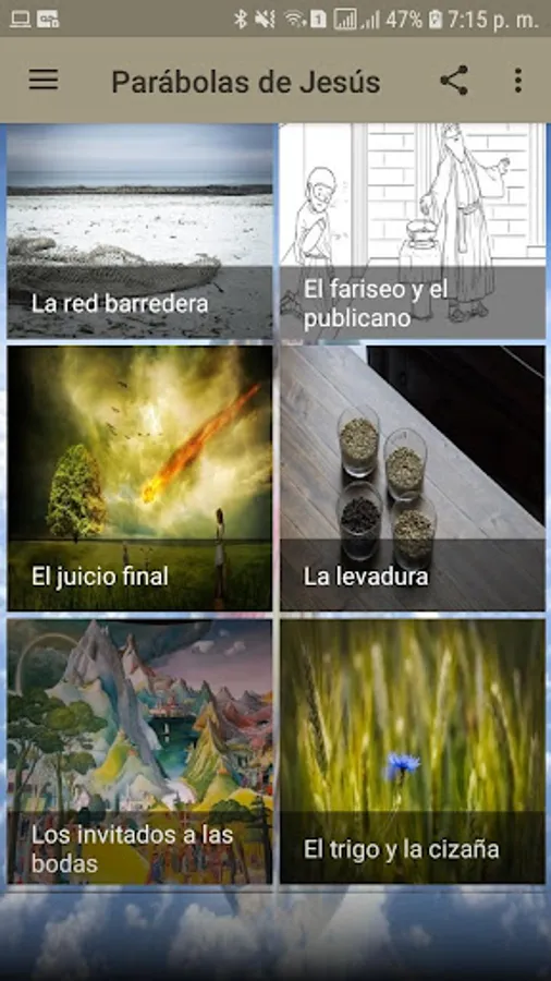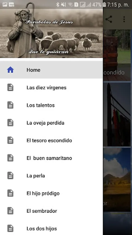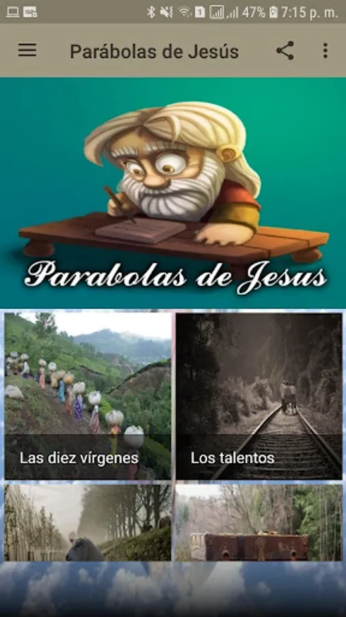 This application of Jesus' parables will find the most familiar parables which reveal a message that Jesus wants to give to his brothers to guide us and help us to be closer to him and his father, to follow his steps to be with him.