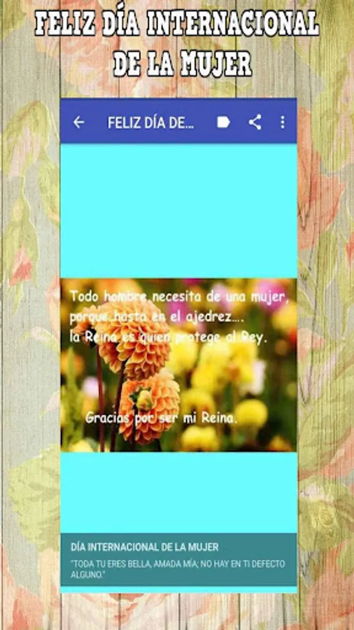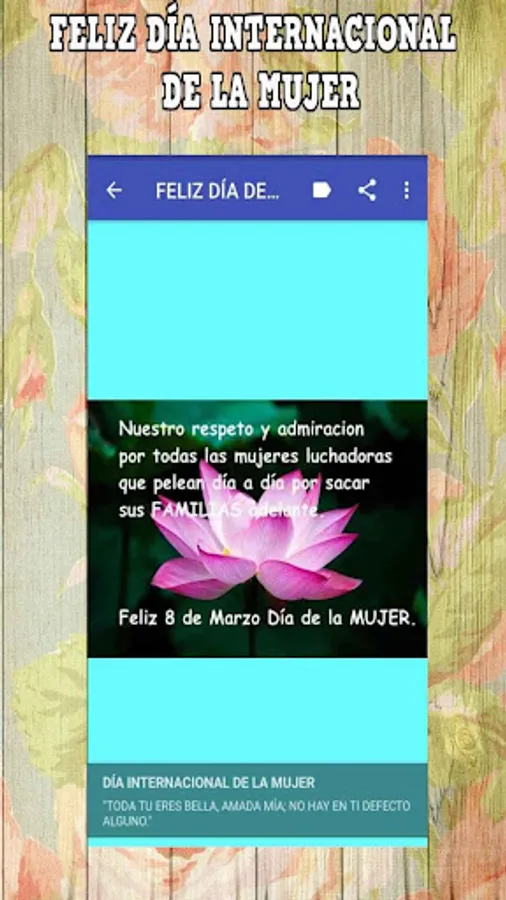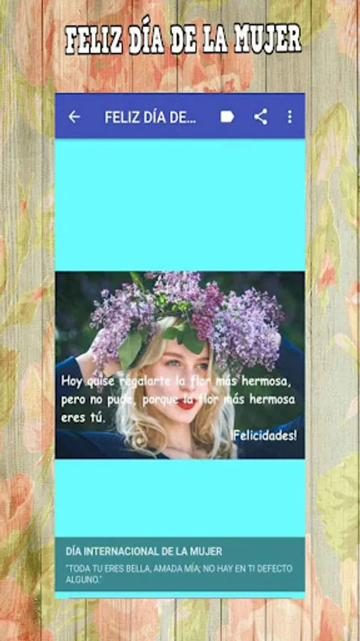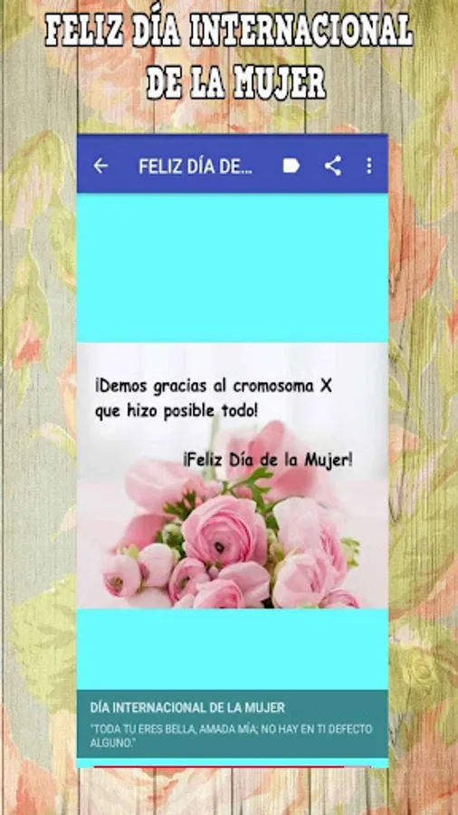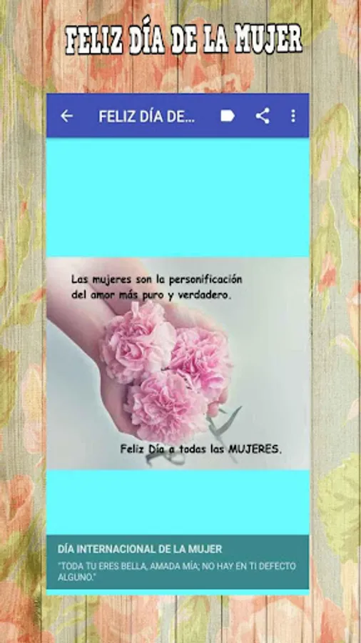 If you liked the application of images with flowers of "Happy Women's Day" with tender messages can help us valued it, leave a comment. Once installed you do not need to be connected to the internet to see the gallery of photos and images.