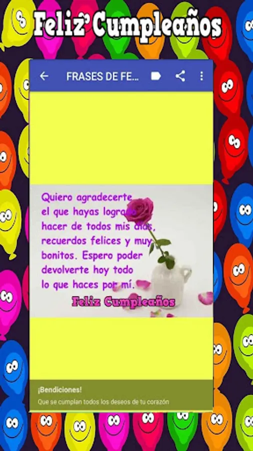 If you liked the "Happy Birthday Phrases" application, you can help us by rating it, leave a comment. Once installed you do not need to be connected to the internet to see the gallery of photos and images of Happy Birthday that will allow you to greet that special person in his day.