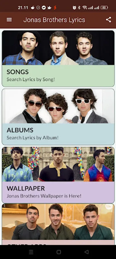 Find all your favourite songs and albums from Jonas Brothers and sing along with them. Find your favourite Jonas Brothers wallpaper for your phone with this app!