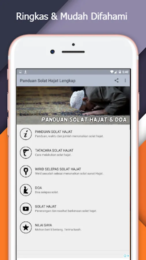 Aplikasi ini merangkumi maklumat dan panduan lengkap solat hajat. Ia juga dilengkapi doa-doa dan wirid selepas solat hajat.