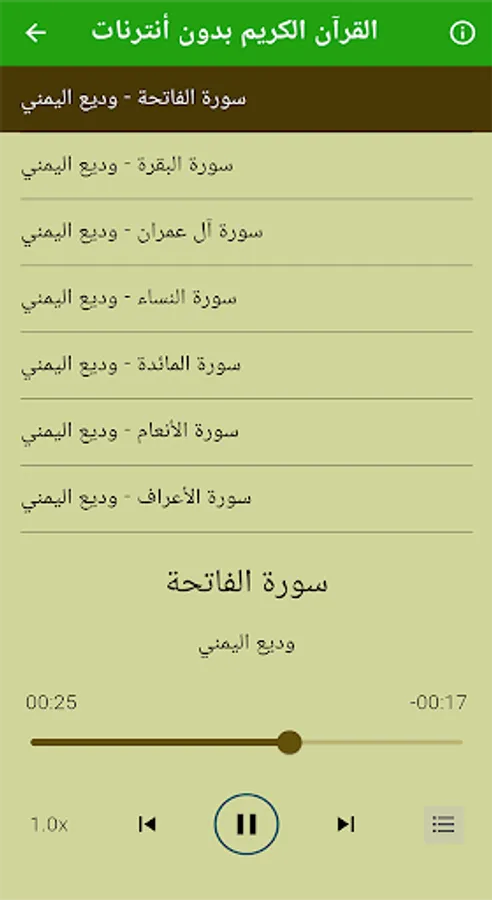 The application that is in your hands includes the entire Holy Quran with the voice of the reader Wadih Al-Yamani, beautiful and pure reading, and the sound is very high quality.