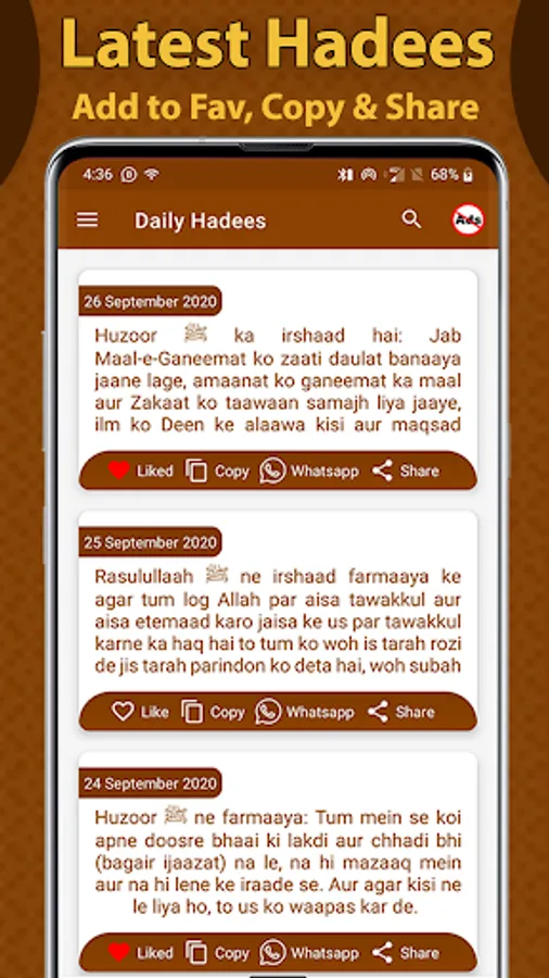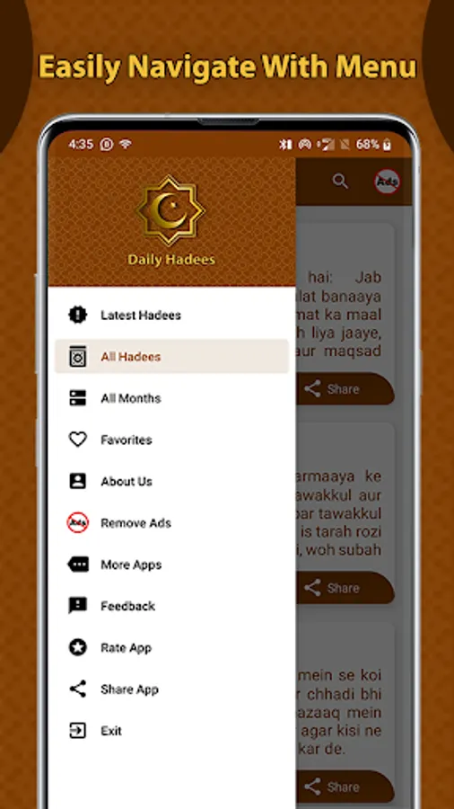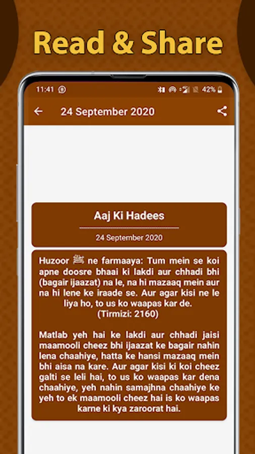 Hadees Collection for Android is an ultimate collection of Hadees of Prophet Muhammad (محمد (صلى الله عليه و سلم (Peace Be Upon Him). The app contains Arabic mattan and translations in different languages of most accepted and authentic Hadees books including Sahih Bukhari, Sahih Muslim, Sunan Abu Dawud and Malik's Muwatta.