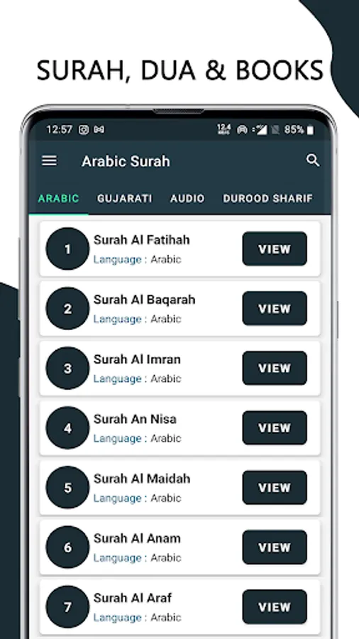 with this app you can easily read quran and surah everyday in your fav languages arabic and gujarati, also you can listen quran para and surah audios.