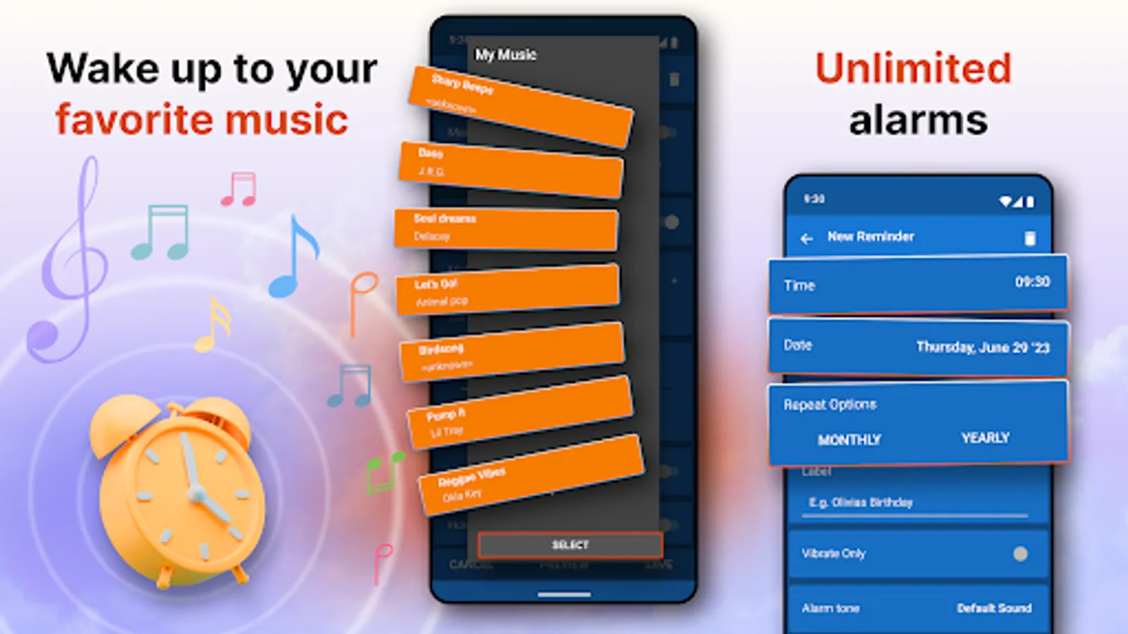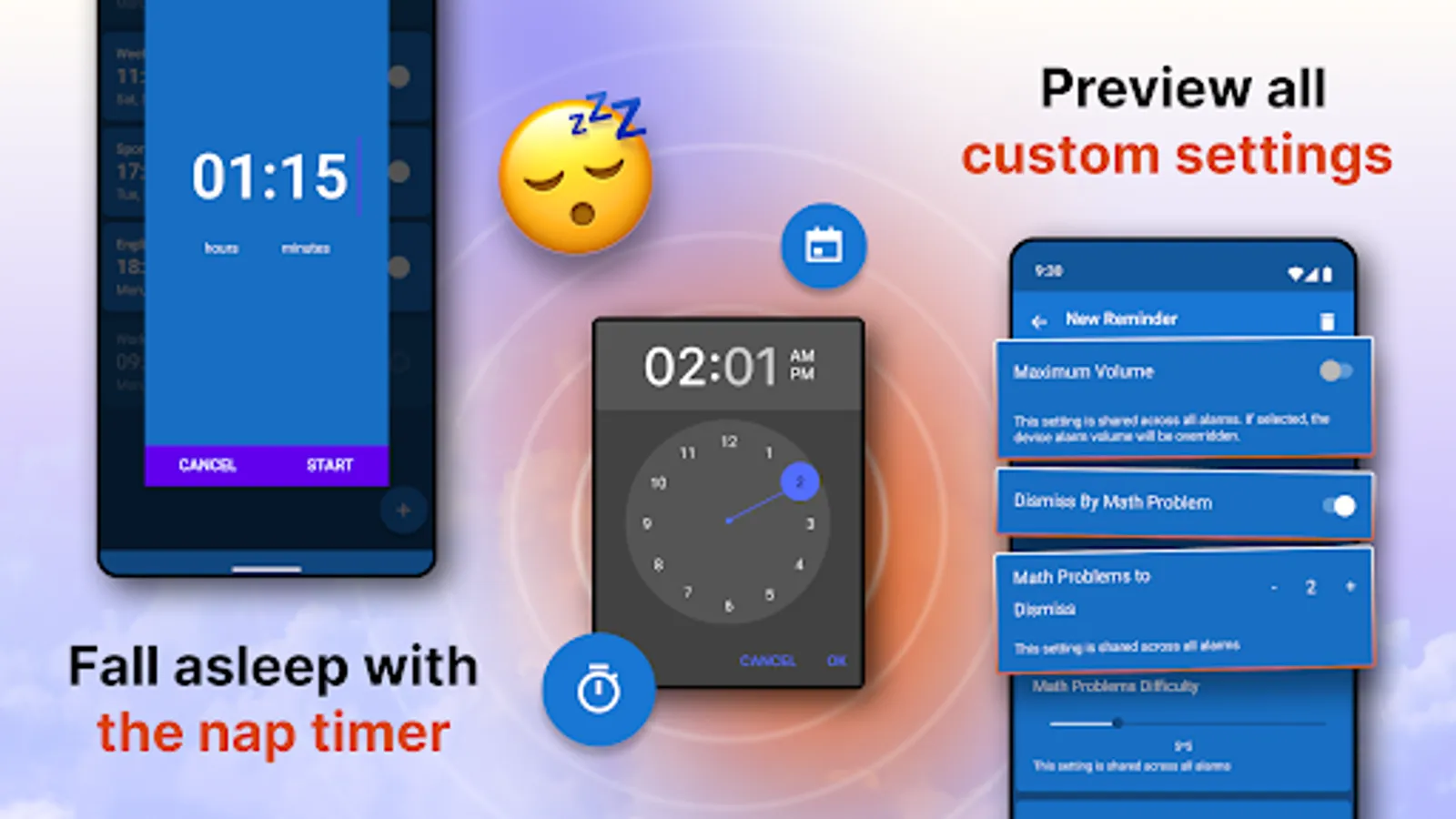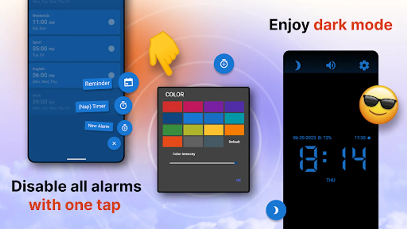 ⚡ Alarm Clock options – You can individually customize each alarm!