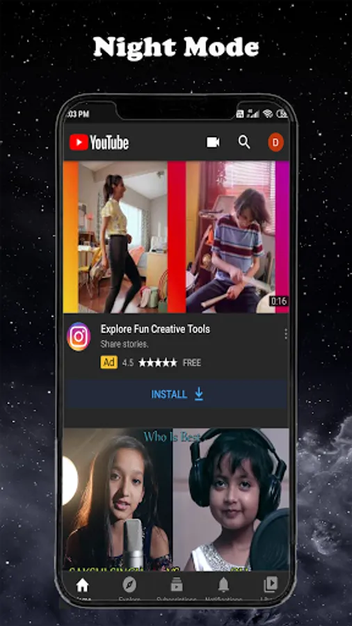 This app protect your eyes from phone screen. When you use mobile at night. The Screen harm your eyes. So this app help to protect from screen. This app make your phone screen as dark theme. So your eyes not damage from screen. When you open others app like social media apps or other app. Their app theme be dark. So you can easily use mobile at nig