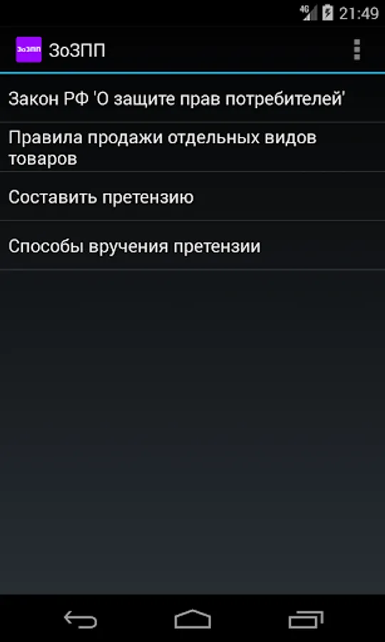In addition, in the application, you will find tips on filing a claim - with the seller, as well as the law on consumer protection - the latest edition of the Russian Federation (ZoZPP), and the rules for the sale of certain types of goods (PPOVT) - of the Russian Federation.