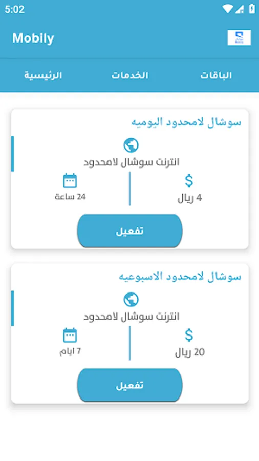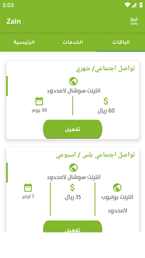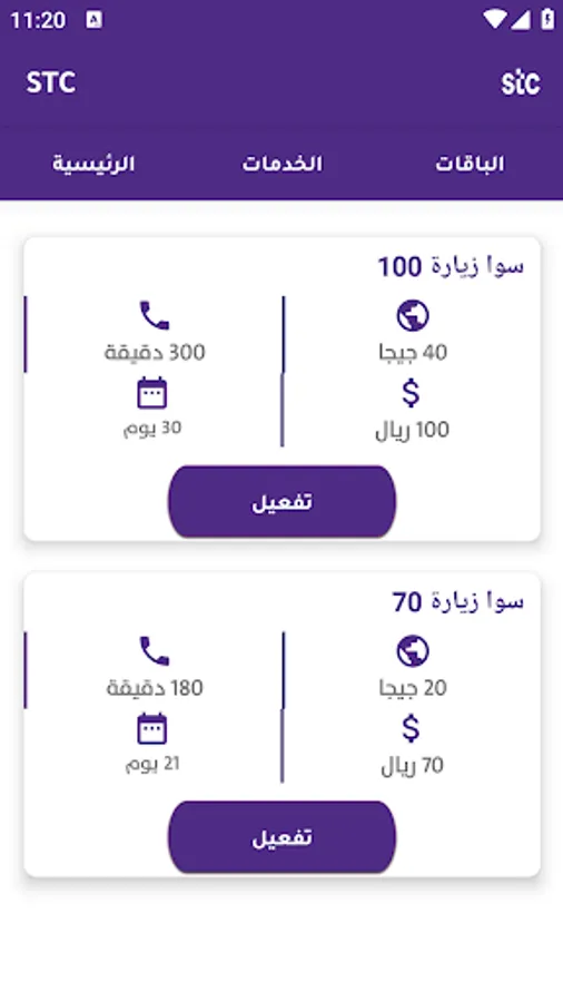 The application contains packages and services from Saudi telecom companies.