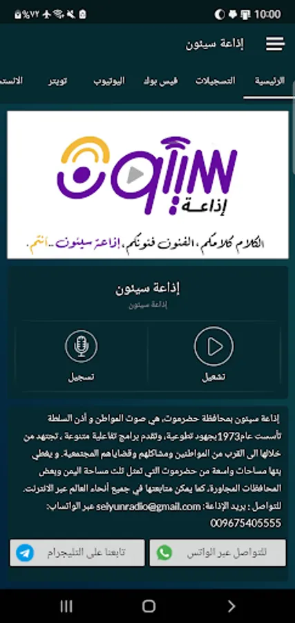 Seiyun Radio in Hadramout Governorate, is "the voice of the citizen and the permission of the authority" founded in 1973 with voluntary efforts, and presents various interactive programmes, through which it strives to be close to the citizens and their problems and societal issues.