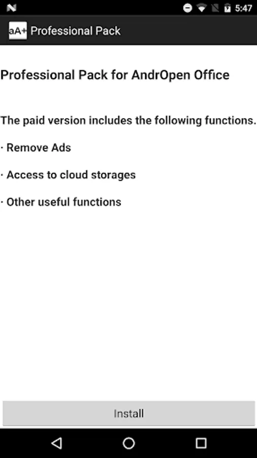 Professional Pack upgrade the AndrOpen Office to the paid version.