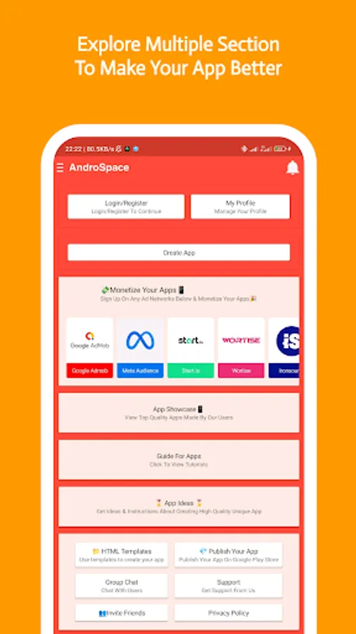 Creating apps without any coding knowledge is possible with our No Code App Builder. Simply provide the content and select the sections you want – web, audio, video, games, quizzes, and more. Once you're done, export the app in apk or abb format. And the best part? You can even monetize it through well-known ad networks like Admob, startapp, and Facebook ads, letting you earn money from your creation.