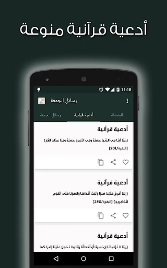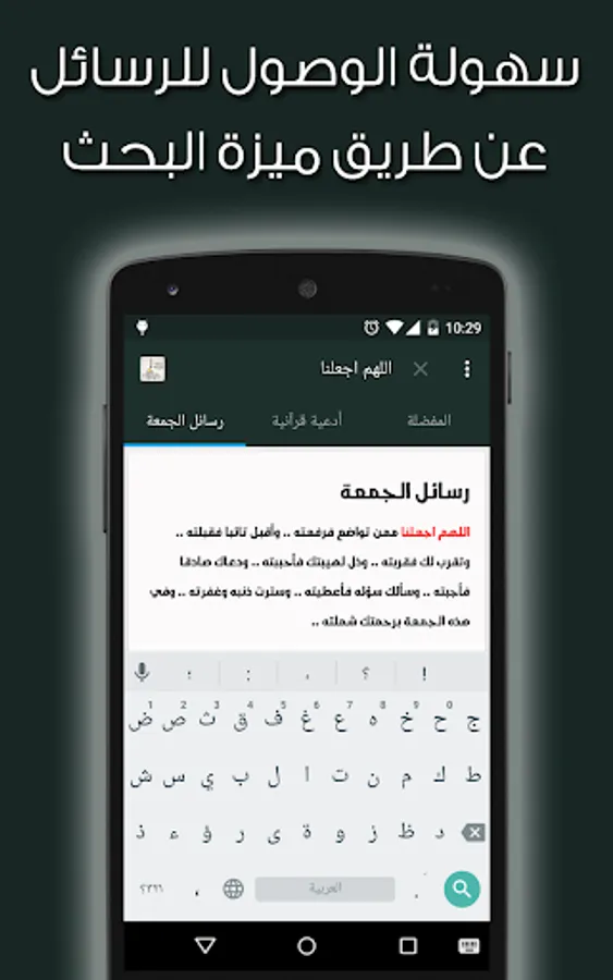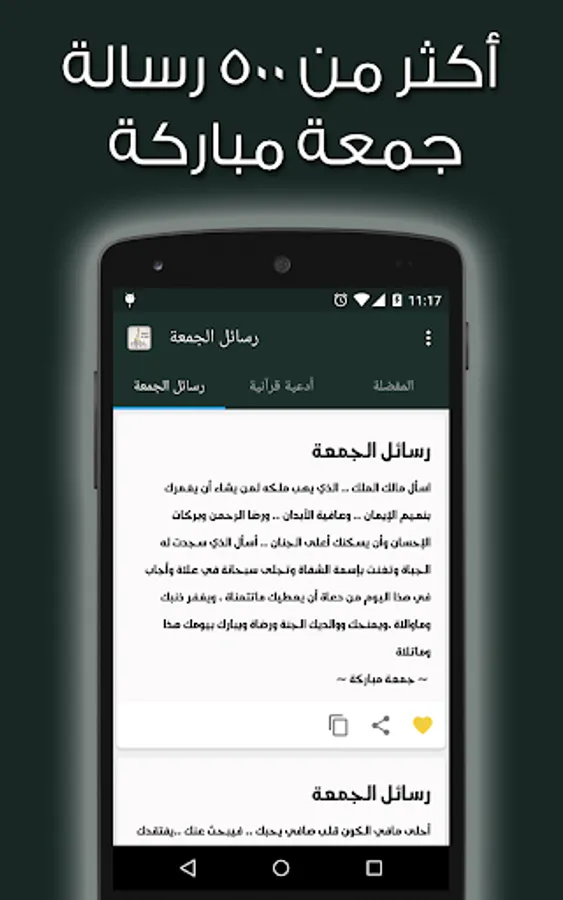 هذا التطبيق يمكنكم من تصفح أكبر مجموعة من رسائل الجمعة والأدعية القرآنية ومشاركتها عبر تطبيقات التواصل الاجتماعي
